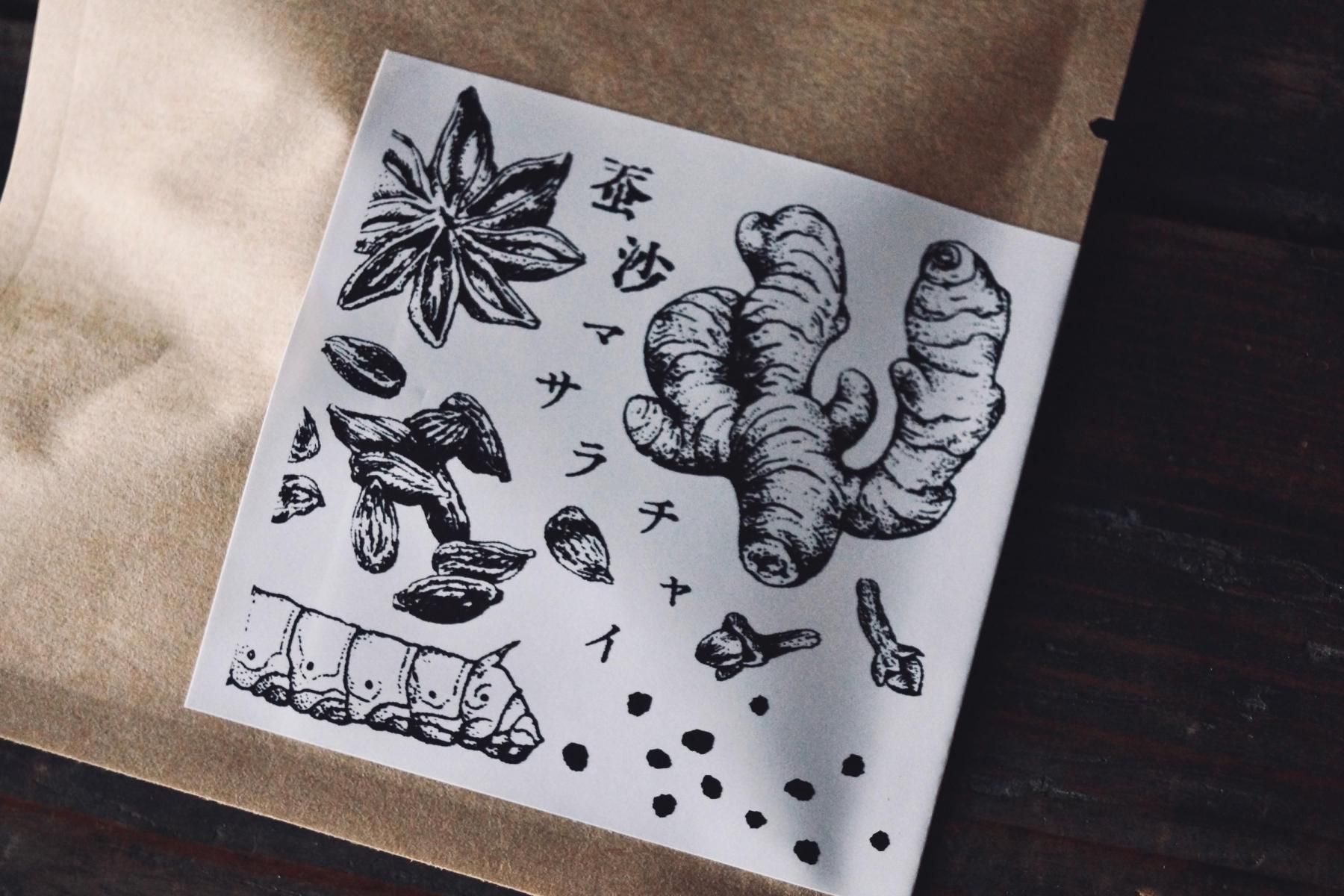 蚕沙をベースに5種類のマサラ(香辛料)をブレンドしたオリジナルのスパイスチャイ。